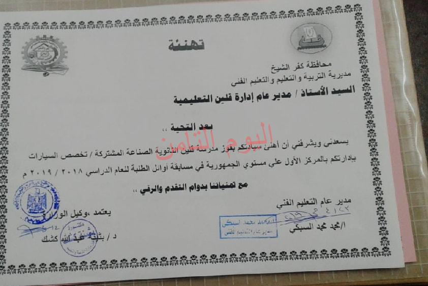 وتقدم مدير عام إدارة قلين بالتهنئة للدكتورة بثينة كشك ،وكيل وزارة التربية والتعليم بكفرالشيخ والمهندس محمد السبكي مدير عام التعليم الفني لدعمهم الدائم لإدارة قلين التعليمية.