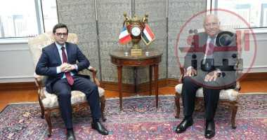 شكرى يستقبل نظيره الفرنسى فى مقر وزارة الخارجية بالعاصمة الإدارية